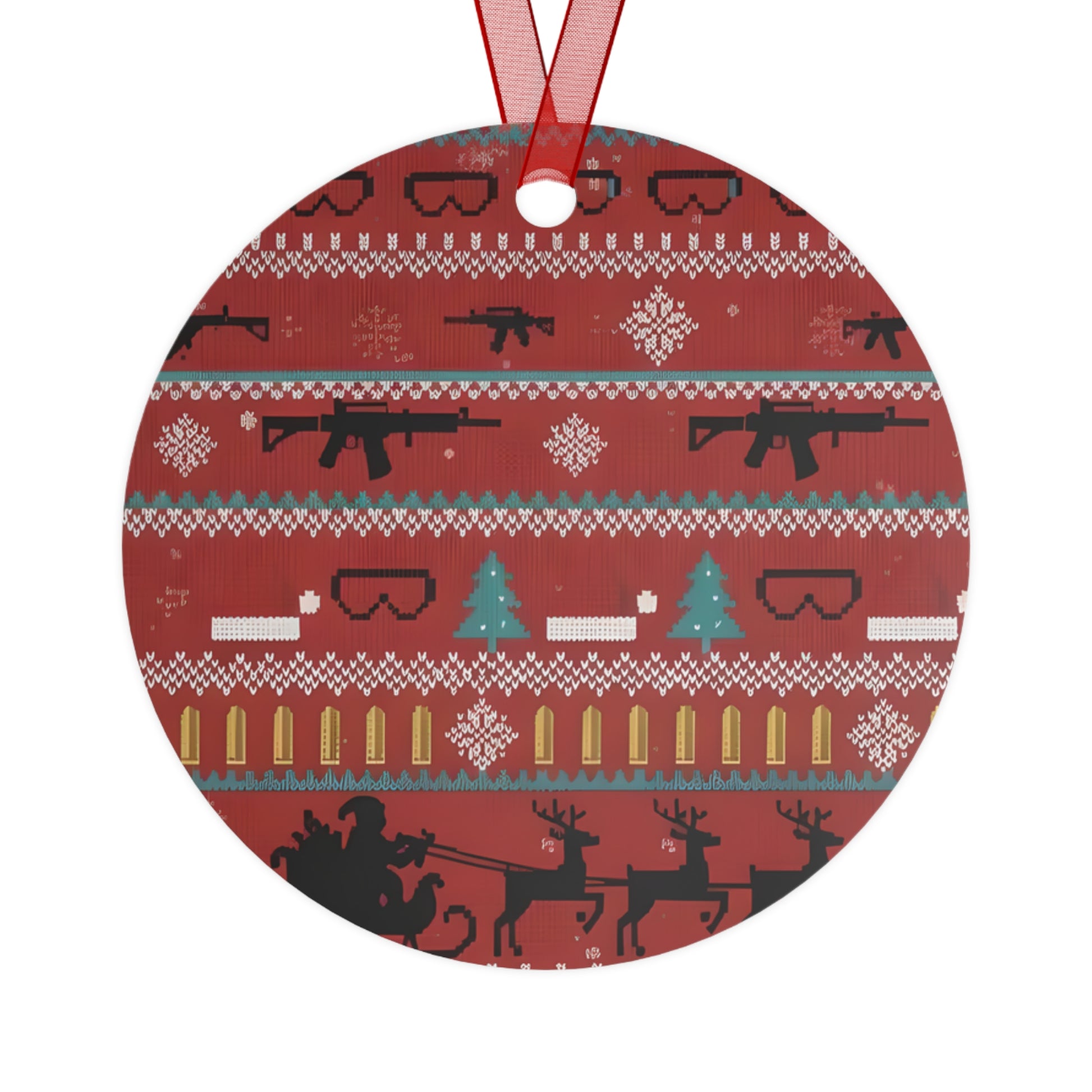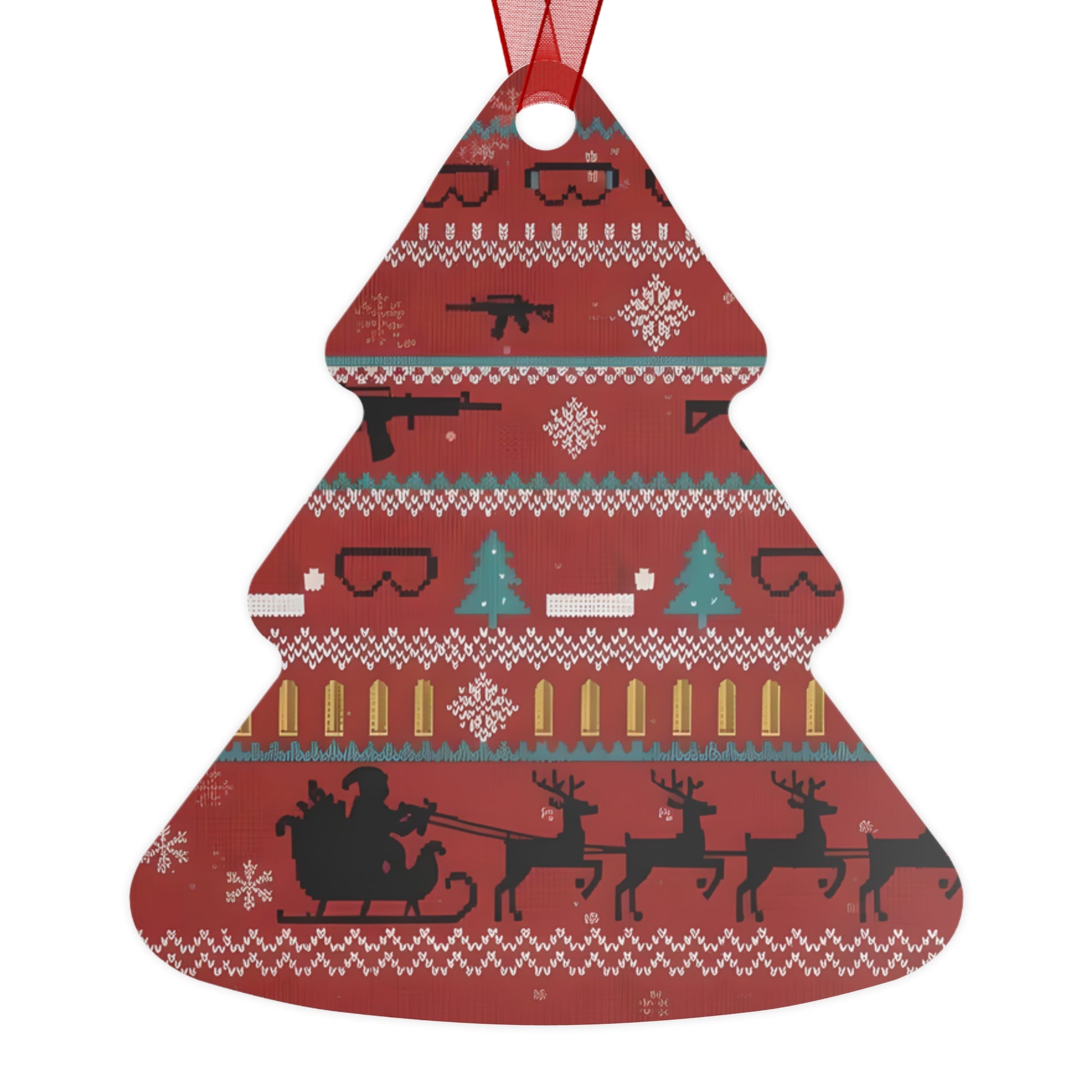 Metal Christmas tree ornaments are durable and will bring holiday cheer for years to come. Print your festive designs on both sides of the white aluminum base, and we'll print them in high resolution with a glossy finish. Their surface is scratch and chip-resistant, so they can be stored together in the famous Christmas decoration box. Choose any or all of these four shapes – bell, tree, round, and oval. Note that there's one ornament per pack, and it already comes with a separate red ribbon for hanging.
