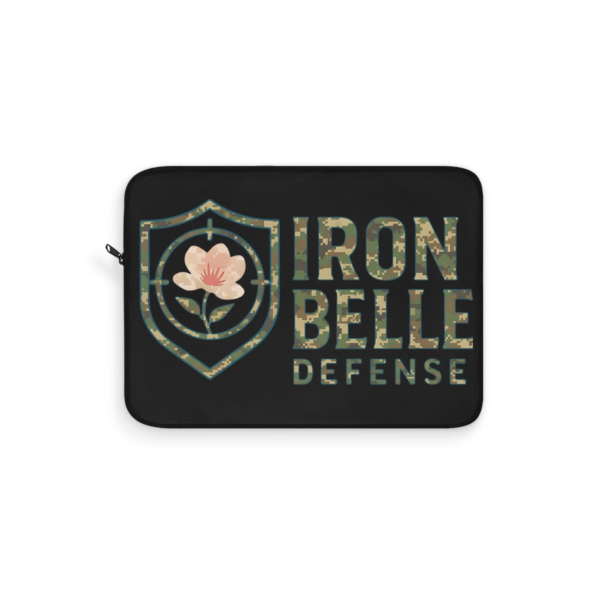 Carry protection with personality. This padded laptop sleeve pairs a tough, water-resistant exterior with a plush fleece interior so your computer slides in softly but stays guarded. The design — a vintage-inspired shield with a delicate blossom and bold “Iron Belle Defense” lettering — balances strength and grace, signaling quiet confidence whether you’re headed to a case meeting, study session, or coffee shop work sprint. Slim and lightweight, it slips into backpacks or tote bags without adding bulk, and the smooth YKK-style zipper makes access quick when you need to power up on the go.